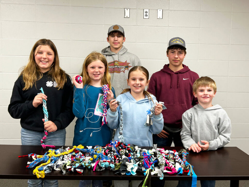 Prairie Wranglers 4-H Club completed their May community service project in which they created and delivered a large number of hand-made toys for the pets that are currently being housed at the Beadle County Humane Society.