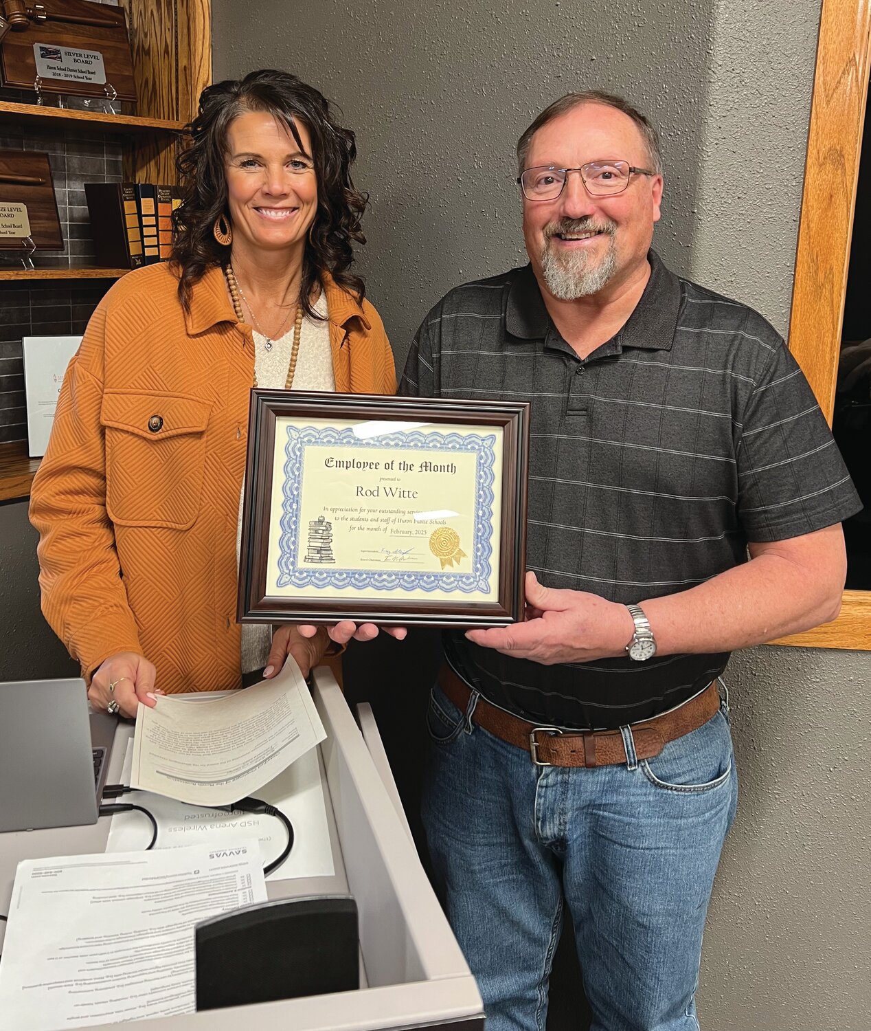 The Classified Employee of the Month was presented to Rod Witte, custodian at the Washington 4-5 Center. The award was presented by principal Kari Hinker.