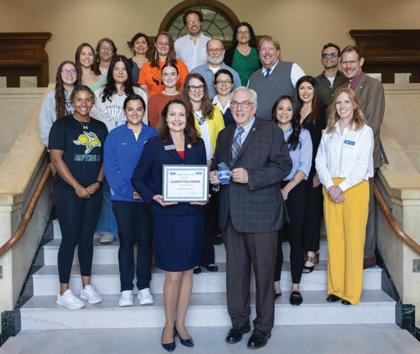 BROOKINGS — South Dakota State University received the Gladys Pyle Award for efforts in young voter registration from South Dakota Secretary of State Monae Johnson on Sept. 30.