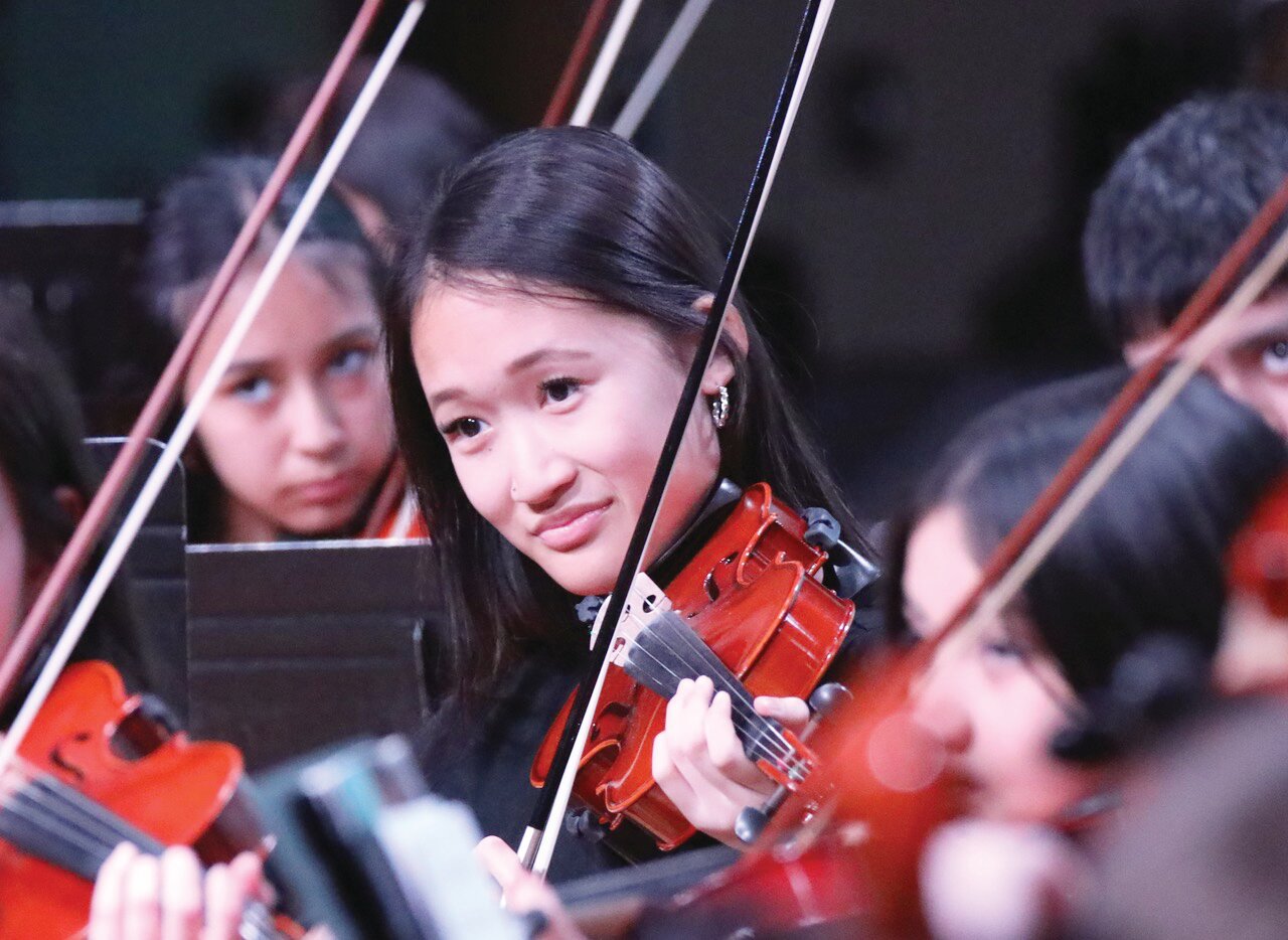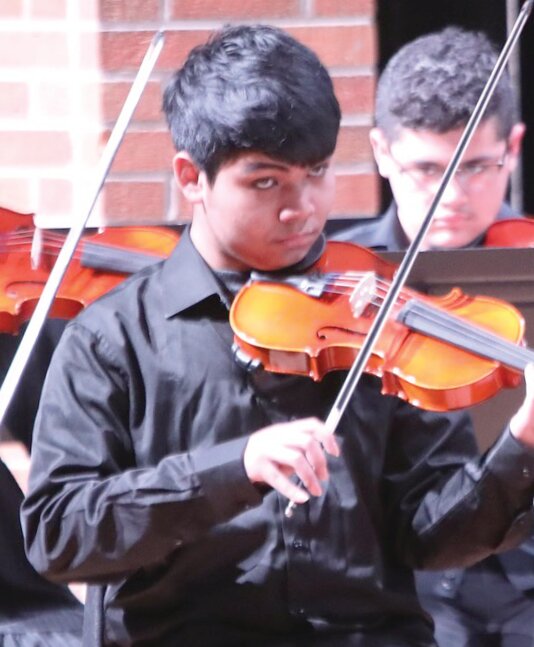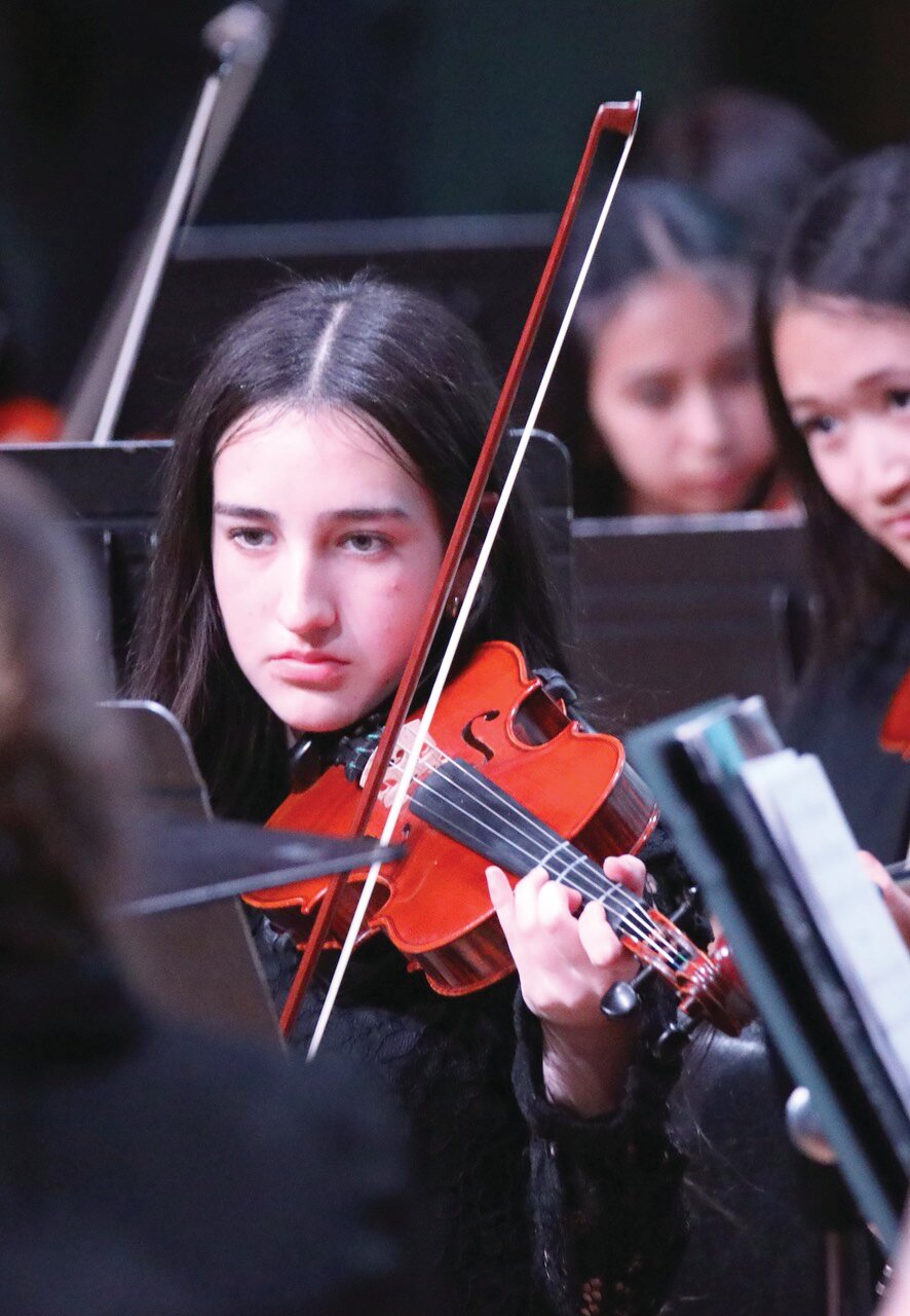 The Huron Middle School and High School orchestras, under the direction of Dr. Beth Neitzert, presented their spring concert on Tuesday evening at the Huron High School Auditorium. Shown are members of the seventh and eighth grade combined orchestra.